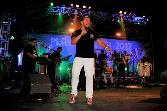 El artista interpretó temas del popular ritmo que se hizo fuerte en los noventa y que muchos seguidores en Lanzarote recordaron con alegría en Playa Blanca, descubriendo además nuevos sonidos y fusiones en la cadencia de Manny Manuel. El merenguero, conocido como ‘El Rey de Corazones’, complació peticiones del público dejando constancia de su cercanía y carisma.
