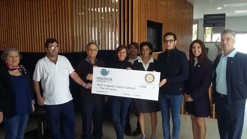 A través de la Fundación de Rotary en España, de la que forman parte los rotarios y todos los clubes filantrópicos establecidos en España, Rotary Club Lanzarote ha logrado que la empresa propietaria del establecimiento turístico Nautilus Lanzarote concediera la ayuda solidaria de 3000 euros para Agustín Suárez Cabrera dentro de los programas de Responsabilidad Social Corporativa que lleva aplicando esta empresa turística desde hace varios años. El joven conoció la aprobación de esta beca a finales de diciembre pasado y ha podido proseguir sus estudios, entre ellos,el abono de las elevadas tasas académicas.
