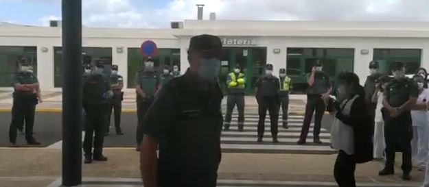 En la salida, tanto personal del centro sanitario como compañeros de la Guardia Civil han querido felicitar a Carmelo Alemán. Desde la Benemérita se ha aprovechado para agradecer la labor de los sanitarios en un emotivo homenaje.