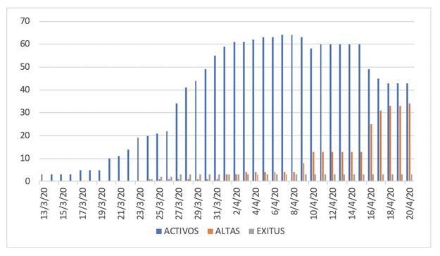Como elemento positivo, cabe destacar que el número de altas supone ya el 42,5% del total de casos totales producidos en Lanzarote.