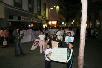 Vestidos en su mayoría de blanco, como había pedido la organización, y con diferentes emblemas y pancartas, todos los asistentes avanzaron por la avenida marítima hasta el Parque Islas Canarias, en donde leyeron un manifiesto los colectivos que lo desearon.
