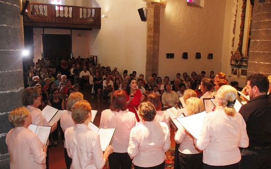La iglesia de Yaiza cuenta con una excelente acústica, escenario ideal para que las corales desarrollen su arte. Impecablemente vestida de blanco subió la Coral Marina de Puerto del Carmen para encantar con ‘Alma, corazón y vida’, ‘En mi viejo San Juan’, impregnada de mucho ritmo antillano, y ‘La Bella Lola’. Dirigida actualmente por Miguel Cabrera Bonilla, Marina presume de una dilata experiencia desde su constitución en el año 98.