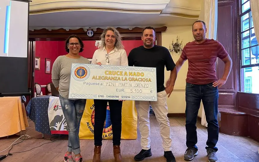 Los tres organizadores de la Travesía a Nado entre Alegranza y La Graciosa se desplazaron el pasado fin de semana a La Palma para entregar un cheque de 5.100 euros, el dinero que consiguieron recaudar con el evento, a Yeni Martín Lorenzo, una mujer que lo ha pasado especialmente mal en estos últimos tiempos y que se mostró muy contenta tras recibir la visita de este grupo de ciudadanos de Lanzarote que han querido pasar de las palabras a los hechos a la hora de echar una mano dentro de sus posibilidades.