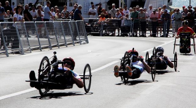 La prueba del sábado en Playa Blanca consistía en completar el mayor número de vueltas en 45 minutos por el circuito sureño de 2,2 kilómetros. La dirección de carrera dividió los handbikers en dos grupos de salida con reto idéntico de tiempo y distancia. Jonas Van de Steene, del grupo de la primera salida, volvió a ganar completando un total de 15 vueltas y consiguiendo su mejor tiempo por vuelta, de 3:21 min, justo en su primer giro.