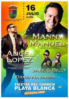 El primer día, precisa este miércoles en un comunicado de prensa el Consistorio sureño, está previsto el Encuentro de Música Popular Parranda Janubio con la presentación además del grupo Parranderos y Punto, invitado de Tenerife. El Día Grande, el 16 de julio, será la función solemne y luego procesión terrestre a partir de las 19:00 horas para finalizar por la noche con el concierto de Manny Manuel y Ángel López, ex vocalista de Son By Four, en la Plaza del Carmen.