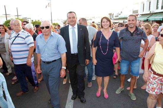 Desde el Ayuntamiento sureño exponen este lunes en nota de prensa que la alcaldesa de Yaiza, Gladys Acuña, el concejal de Festejos, Javier Camacho, miembros de la Corporación Municipal, representantes de instituciones públicas y el patrón mayor de la Cofradía de Pescadores de Playa Blanca, Cristo Caraballo, estuvieron al lado de jóvenes y viejos marineros del sur de Lanzarote y devotos que oraron y lanzaron vítores a la Virgen en medio del ambiente festivo propio de esta tradición. Antes de la procesión, el párroco de Yaiza, Sixto Álvarez, presidió la celebración de la eucaristía ante un templo completamente abarrotado.