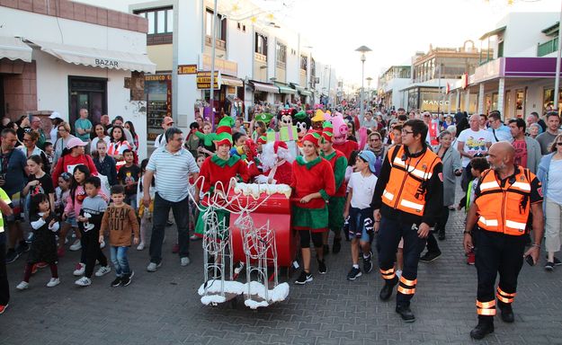 Papá Noel y su cortejo de animación infantil recorrieron este lunes la calle Limones de la localidad turística de Playa Blanca desatando a su paso sonrisas y alegrías la víspera de Nochebuena. Familias del municipio y cientos de turistas que descansan el fin de año en el sur de Lanzarote siguen respondiendo con una alta participación al programa propuesto por el Ayuntamiento de Yaiza que ameniza la temporada de Navidad y Reyes.