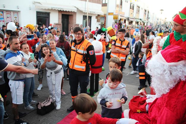 La cercanía de Papá Noel provocó muchísimas ilusiones como incontables fotografías y vídeos. El barbudo vestido de rojo fue el gran protagonista de la jornada festiva animando el pasacalle navideño de Playa Blanca, aunque su trabajo no terminaba allí porque nada más finalizar el recorrido atendió pacientemente a niños y niñas que reclamaban atención personalizada. Chicos y grandes disfrutaron por igual de la presencia del personaje más popular por estos días donde se disparan peticiones y buenos deseos.