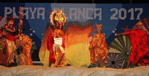 La historia que cuenta el ocaso de un rey y que narra la llegada de su sucesor pasando por conflictos, dudas y sentimientos encontrados, y que termina felizmente con la conquista del reino de la jungla por parte de Simba, conmovió al público que este sábado llenó la Plaza del Carmen de Playa Blanca para disfrutar del exitoso musical interpretado por quince actores y bailarines de la compañía Spanglish Producción Playa Blanca, integrado por profesionales de la animación de los hoteles Hesperia Playa Dorada y Papagayo Arena del núcleo turístico sureño.
