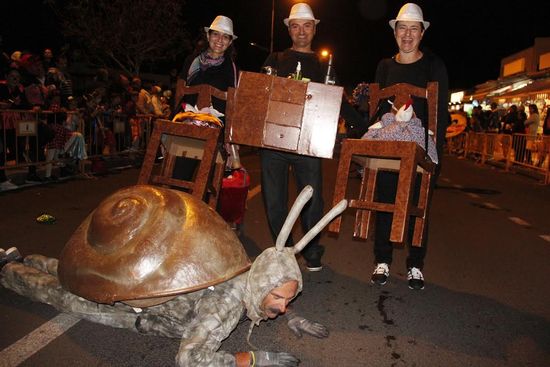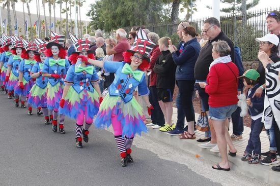 El núcleo turístico de Playa Blanca vivió intensamente este sábado la juerga colectiva más grande de su Carnaval. Infinidad de mascaritas, quince carrozas, una veintena de grupos y cientos de espectadores, muchos de ellos igualmente disfrazados, salieron a la calle para disfrutar y contagiarse de esa ruta plagada de música, color, ingenio y desenfreno que entraña el coso carnavalero del sur de Lanzarote.