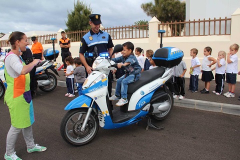 Para los alumnos de los distintos centros educativos de Yaiza resultó divertido subirse a las patrullas y manosear algunos de los instrumentos que llevan esos vehículos que habitualmente ven por la calle con mucho respeto. La visita de esta semana de la Policía Local de Yaiza a los colegios hace parte del programa de actividades con motivo de la celebración del Día de Santa Catalina.