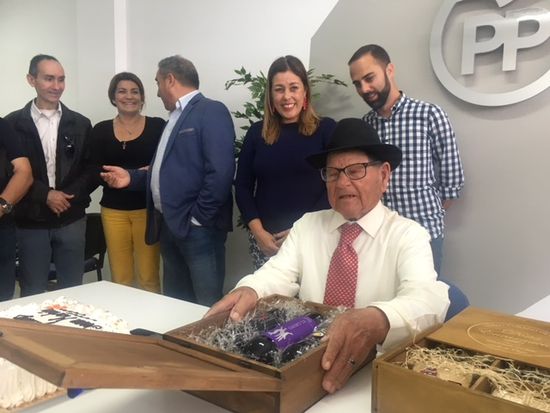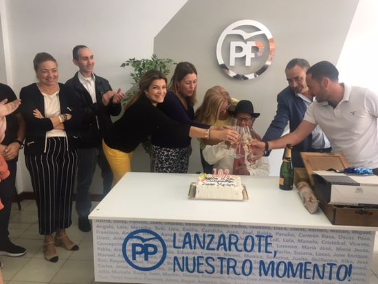 Los populares lanzaroteños, encabezados por la presidenta insular, Astrid Pérez, han agasajado este jueves al afiliado de honor del Partido Popular (PP) de Lanzarote y al más longevo, don Juan Machín, en el día de su 102 cumpleaños. Machín es hace años el tertuliano más veterano de toda la radio en Canarias y participa cada viernes por la mañana en las tertulias del programa 'A buena hora' de Crónicas Radio-Cope Lanzarote.