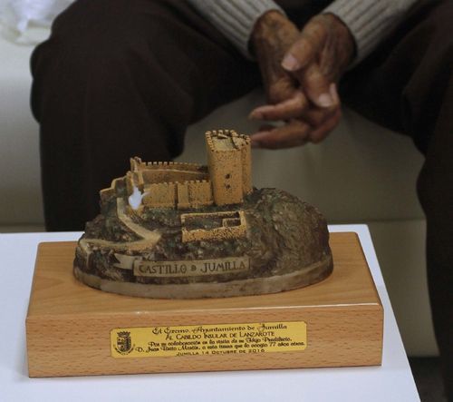 En esta localidad, apunta este miércoles el Cabildo en un comunicado de prensa enviado a esta redacción, el lanzaroteño Brito Martín fue homenajeado en un emotivo acto de "hermanamiento" que estuvo presidido por la alcaldesa Juana Guardiola Verdú. El Hijo Predilecto de Lanzarote regresó a Jumilla después de 77 años, cuando en 1939, al finalizar la guerra civil española, permaneció unos tres o cuatro meses acogido por una familia jumillana. En este acto homenaje el Hijo Predilecto de Lanzarote ofreció además una conferencia sobre sus recuerdos, titulada 'Jumilla en mi Memoria 1939-2016', con proyección de imágenes también de la isla de Lanzarote. Durante el acto, la alcaldesa hizo entrega de varios presentes, que fueron entregados al presidente del Cabildo quien agradeció en nombre de la Corporación insular los mismos, así como el recibimiento ofrecido al Hijo Predilecto de Lanzarote para recordar el paso de éste por su municipio.