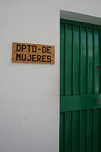 El módulo de mujeres es un pequeño edificio de dos plantas con la fachada blanca y las ventanas y puertas verdes. Si no fuese por las alambradas y las cámaras de vigilancia instaladas en los muros, y porque todas las puertas de entrada están cerradas, nadie diría que aquellas construcciones son parte de una prisión. En la planta de arriba están las celdas, pequeñas habitaciones rectangulares con una ventana en las que cabe una litera de dos camas y poco más. Cada una tiene un aseo con lavabo y retrete. Las duchas están fuera y son comunes a todas las internas. También cuentan con un armario para guardar la ropa. La puerta tiene una ventanita cuadrada de apenas nueve centímetros cuadrados y tres cerrojos rudimentarios. Las instalaciones son antiguas, pero están limpias.