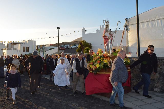 La función religiosa en honor a San Blas contó ayer por la tarde con la asistencia del alcalde de Tías, Pancho Hernández, el concejal de Fiestas, Francisco Javier Betancort, los concejales del grupo de Gobierno y ediles representantes de las fuerzas políticas presentes en Tías. Tras la procesión con la imagen de San Blas, el cura párroco de Tías, Agustín Lasso, hizo la bendición de los cordones de San Blas que fueron distribuidos entre los feligreses para protegerse ante los catarros e infecciones de las cuerdas vocales, como marca la tradición con este santo.