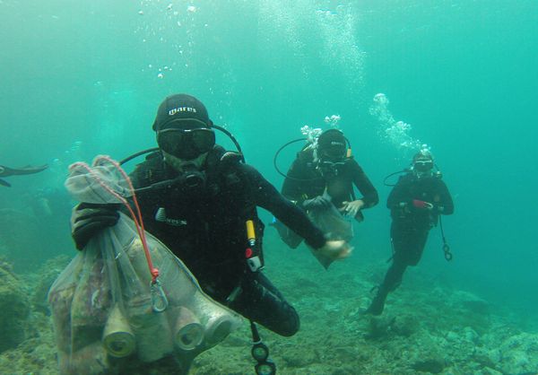 A lo ancho y largo de la playa, en el zona del paseo marítimo, así como en las rocas y jardines de alrededor, turistas y residentes de todas las edades, solos y en familia, retiraron decenas de botellas, latas, bidones, papeles y plásticos, además de una gran cantidad de colillas y otros desechos rescatados del fondo del mar. Tres kayakistas sirvieron de apoyo a los buceadores en alta mar para descargar la basura recogida en sus redes y poder continuar con la labor sin necesidad de volver a tierra.