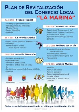 Al finalizar la obra de teatro continuará una charanga y una Master Class de Zumba en el parque José Ramírez Cerdá. El Plan de Revitalización del Comercio Local "La Marina", tiene previstas actividades hasta el 16 de diciembre.