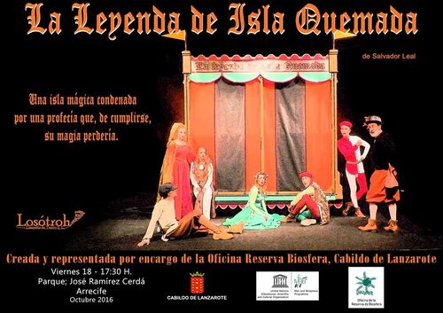 Dentro del programa de actividades que tiene previsto el Cabildo de Lanzarote y el Ayuntamiento de Arrecife, Plan de Revitalización del Comercio Local "La Marina", mañana viernes 18 de noviembre a las 17.30 horas en el parque José Ramírez Cerdá, se representará la obra de teatro "La Leyenda de la Isla Quemada". Es una obra creada y representada por encargo de la Oficina de la Reserva de la Biosfera, la escenificación encarna con precisión y gran maestría qué significa tener y conservar este galardón medioambiental.