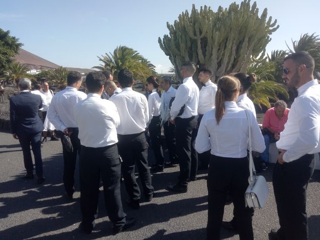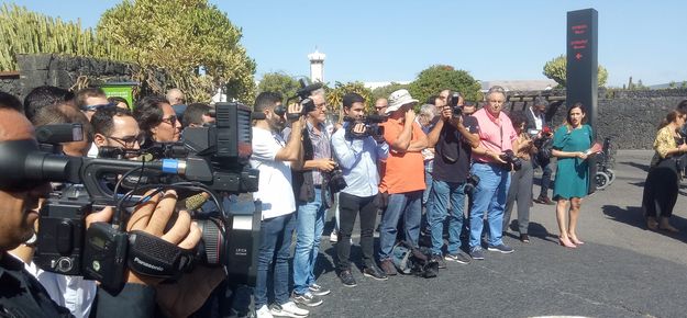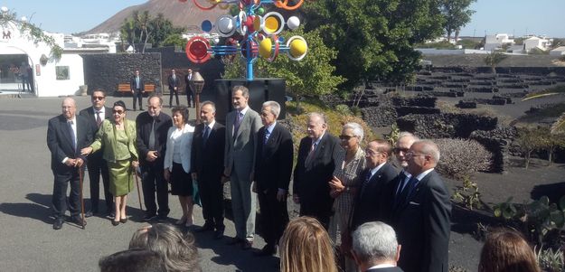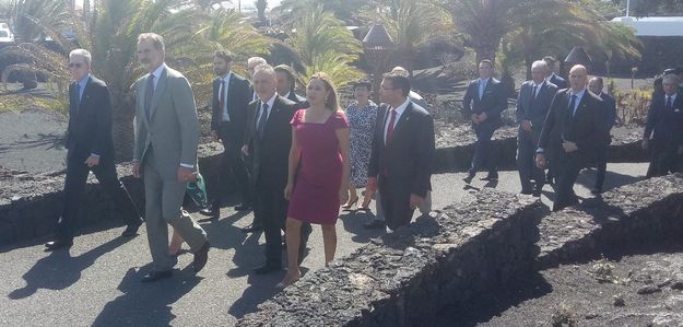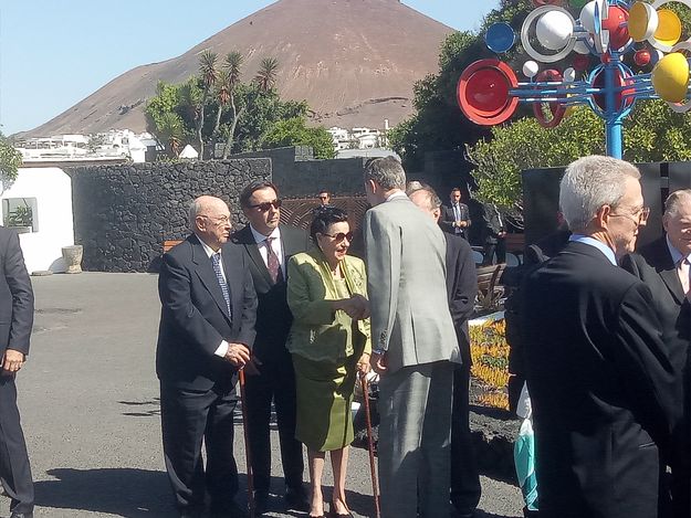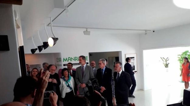 El Rey llegó puntual a la cita que se había programado en la Fundación que creó el universal artista lanzaroteño, sobre las doce del mediodía. Junto a él, asistían una larga comitiva encabezada por la ministra de Educación del Gobierno en funciones, María Isabel Celaá, el presidente del Gobierno de Canarias, Ángel Víctor Torres, el presidente del Parlamento autonómico, Gustavo Matos o cargos lanzaroteños en el Ejecutivo autónomo, como la viceconesejera de Educación, María Dolores Rodríguez. .