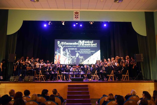 La noche festiva concluyó con el “Gran Encuentro Musical Municipal” en el que las actuaciones conjuntas de la Banda, Coral y Escuela Municipal de Folclore de San Bartolomé sacaron los aplausos del aforo completo del Teatro. Folclore, música de todos los tiempos, bandas sonoras y música coral se dieron la mano con gran profesionalidad ofreciendo un gran concierto.