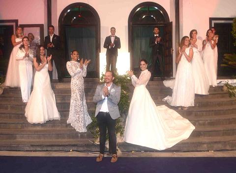 Oswaldo Machín presentó su colección de novias y novios en la que resaltaron los vestidos y trajes con esa elegancia que dan los buenos cortes bien hechos, realizados en su taller. Telas espectaculares, naturales, en la que las transparencias y encajes dejaban entrever el cuerpo espectacular de las modelos, prendas llenas de sensualidad que se salen de lo convencional resaltando la figura de cualquier mujer en un día tan especial como es el de la boda. La pasarela contó también con novios, trajeados en oscuro, dando ese toque chic de glamur y celebración. El final del pase se hizo a lo grande, reluciendo la pasarela como en noche de perseidas, con destellos plateados sobre los participantes.
