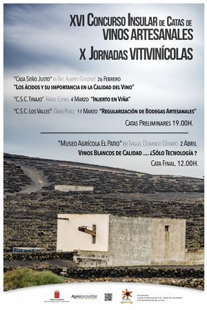 La final tendrá lugar a partir de las 12.00 horas del sábado, 2 de abril, en el 'Museo Agrícola El Patio' de Tiagua e incluirá la charla que ofrecerá el ingeniero técnico agrícola Domingo Donato titulada 'Vinos blancos de calidad...¿solo tecnología?