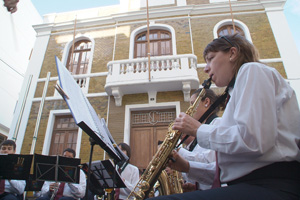 El festival arrancó este lunes con la actuación de las bandas de música del Conservatorio y las escuelas de Tías y Yaiza, a las 17:30 horas en la Calle Real de Arrecife.