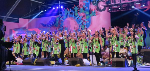A continuación le tocó el turno a Vacilonas. Las 62 componentes dirigidas por Marta Ruíz, interpretaron los temas: “repartidoras del Carnaval, lo que pidas te lo puedo llevar” y “Con aguja y dedal, siempre criticando el Carnaval” con el diseño “Todo lo que sueñas, te lo hacemos realidad”.