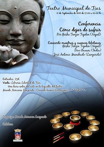 Según informa el Ayuntamiento de Tías, en su conferencia impartirá “enseñanzas cercanas y con corazón para poder vivir una vida más feliz, en armonía y completa”. Geshe Tenzin Topden también intervendrá en el concierto de mantras y cuencos tibetanos, que contará además con la intervención de Devo Baxani (India) y José Antonio Manchado. Previamente, a las 20.30 horas del sábado, el citado maestro tibetano dirigirá una meditación abierta en la pirámide de Costa Teguise.