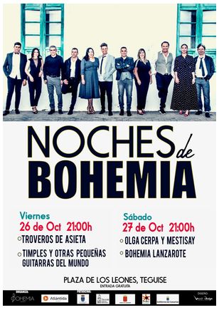 La música folk canaria invadirá el próximo fin de semana la Plaza de Los Leones en el primer Festival Noches de Bohemia, que reunirá sobre el emblemático y patrimonial escenario de la Real Villa de Teguise, a un elenco de artistas canarios gracias a la colaboración de instituciones públicas y privadas.