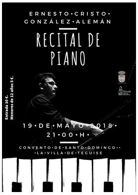 Otra de las actuaciones musicales para este fin de semana, es el concierto de Ernesto Cristo González Alemán, que tendrá lugar el sábado 19 en el Convento de Santo Domingo. El joven músico lanzaroteño comenzó sus estudios de piano a los ocho años en Lanzarote y en 2016 se trasladó a Tenerife para continuar sus estudios de piano en el Conservatorio Superior de Canarias de la mano del profesor Javier Laso.