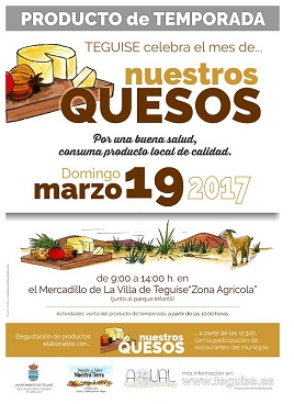El Gobierno municipal de Teguise informa en un comunicado de prensa remitido a este periódico que los quesos de Soo, El Faro, Flor de Teguise y Pastor de Tahíche serán los protagonistas de la muestra de productos locales que tiene lugar un domingo al mes en la Plaza Agrícola del Mercadillo de Teguise. En esta ocasión, el restaurante Hespérides deleitará al público con una “Espuma de queso con tierra de frangollo y coulis de mora”, mientras que el restaurante Acatife ofrecerá una degustación de “Queso con higo y reducción de vino tinto".