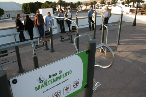 El Ayuntamiento de Teguise, con la colaboración de la Caja de Ahorros de Canarias, a través de su Obra Social, ha puesto en marcha en la Villa de Teguise un área de mantenimiento físico destinado a las personas mayores del municipio. El primer edil, José Dimas Martín, visitaba las instalaciones junto a la concejala de Servicios Sociales, Lourdes Cabrera; junto a varias vecinas se interesaban por el funcionamiento de las máquinas instaladas junto al parque infantil de la Plaza de la Mareta.