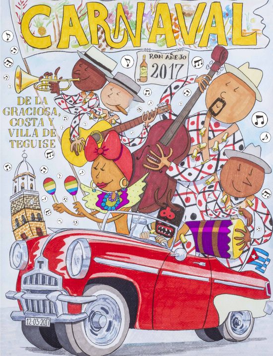 Teguise cuenta ya con la imagen que anunciará el Carnaval de todo el municipio para 2017. El área de Cultura y Festejos del Ayuntamiento de Teguise ha resuelto, tras lanzar el concurso de diseño del cartel anunciador bajo la alegoría “Cuba: al son de Guajira”, que la obra que mejor ha sabido transmitir la temática elegida en su día por los usuarios que votaron en la web www.teguise.es, ha sido el diseño realizado por el ilustrador Íñigo Franco, según ha informado este lunes en nota de prensa.