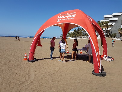 El Ayuntamiento de Tías está apoyando la campaña de sensbilización y prevención de ahogamientos en el litoral de la Isla permitiendo la instalación de carpas informativas a través de la campaña puesta en marcha este verano por el Consorcio de Seguridad y Emergencias de Lanzarote y la Fundación Mapfre Guanarteme.