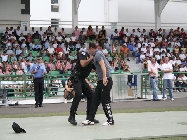 Sus profesores aseguraron que están acostumbrados a ver actuar a los agentes, dada la cercanía entre ambos centros, pero las expresiones de sus rostros parecían no dar crédito a lo que sucedía en el campo de fútbol de la localidad y todo llamaba su atención. Los pequeños fueron testigos de una detención por atraco a mano armada, de un tirón al bolso de una buena señora, de una reyerta y hasta de una persecución en coche patrulla. No faltó de nada en el simulacro ideado por el Ayuntamiento para escenificar las acciones que suele realizar la Policía Local.