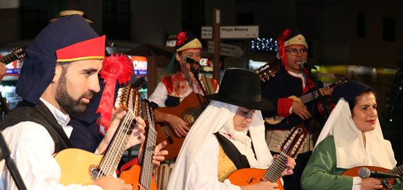 El cuerpo de baile y toque de la Agrupación Músico Cultural Timbayba, que cuenta con más de 30 años de historia, cautivó anoche a turistas y residentes con un precioso espectáculo en la calle Limones de Playa Blanca, que incluyó bellas interpretaciones de temas y bailes de la tierra como Canción de La Palma, Seguidillas de Lanzarote, Folía de Lanzarote o 'Somos Costeros', una de las canciones canarias más interpretadas en todo el archipiélago y que dedicaron al concejal de Cultura de Yaiza, Daniel Medina, que presenciaba la actuación junto a Manuela Rodríguez, concejala de Comercio, según ha informado este jueves el Consistorio sureño en nota de prensa.