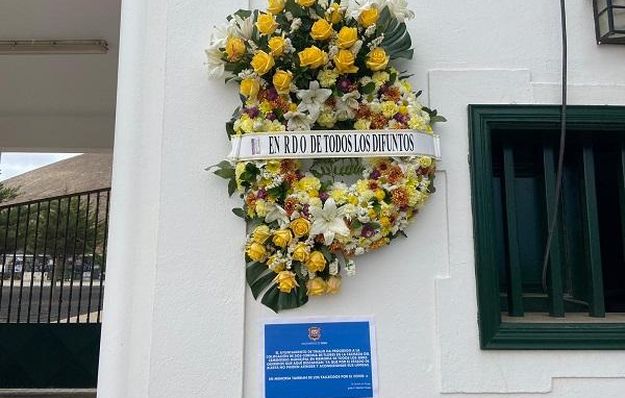 El Ayuntamiento de Tinajo ha colocado este lunes en la entrada del Cementerio Municipal dos coronas de flores en recuerdo de los seres queridos que allí descansan y de los fallecidos por la COVID-19.