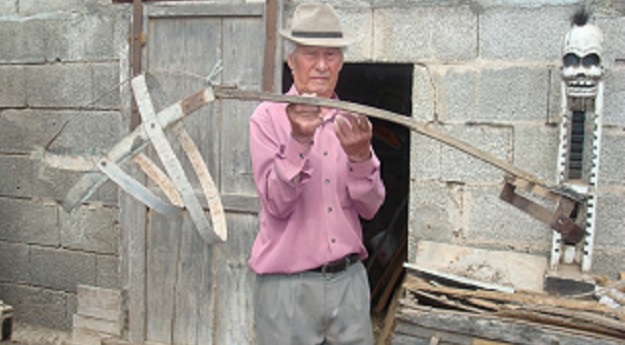 - Un saludo en mi nombre ya que esto lo hemos perdido, eso lo volví a hacer yo después de tantos años y me gustaría volver a verlos porque todo se termina, como todas las cosas. Yo me gustaría volver a nacer sobre este asunto. Yo hice a unos amigos míos…, en Tinajo hay otra pareja de toros, que se los hice yo, se los regalé porque me pedían prestados los míos. Ellos tienen dos que los hice yo y entonces, pa que no me los estuviesen pidiendo, porque los míos estaban estropeados les hice una pareja. Ellos tienen una pareja nueva y los sacan en Tinajo. Son… ¿tú conoces a Toribio?, …el hijo de Toribio. Por medio de ese chico les hice yo una pareja y los sacan en Tinajo, esos están más nuevos. El que los tiene vive en Mancha Blanca.
