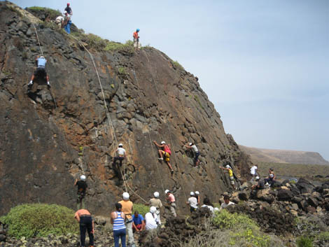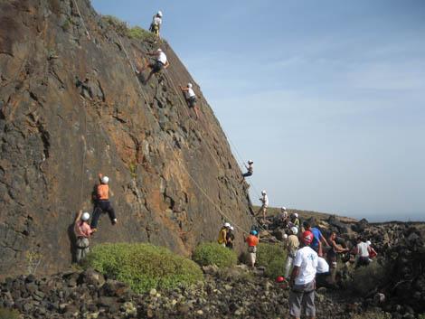 Los participantes disfrutaron de un encuentro en la zona norte de la Isla, donde pudieron practicar iniciación a la escalada en una zona de enorme belleza e interés medioambiente: el Parque Natural de La Corona.
