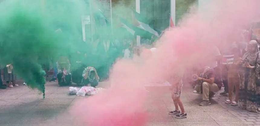 "¡Por la Paz y la Justicia en Palestina!", dicen por último.