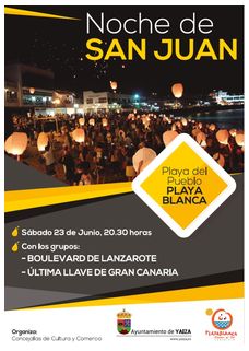 La localidad turística de Playa Blanca está lista para celebrar la Noche de San Juan que da este sábado 23 de junio la bienvenida al verano con una fiesta en la playa del pueblo animada desde las 20:30 horas por el grupo grancanario de pop- rock Última Llave y la banda rockera de Playa Blanca Boulevard. El programa organizado por el Ayuntamiento de Yaiza, a través de las concejalías de Cultura y de Comercio, prevé la suelta de más de 300 farolillos que iluminarán la noche festiva sureña.