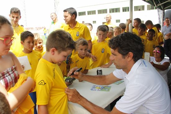 Más de cincuenta niños participantes en el Campus de Futbol de Yaiza le expresaron este miércoles personalmente muestras de cariño y admiración a Juan Carlos Valerón, crack del fútbol canario y español dentro y fuera de los terrenos de juego, durante su visita de este miércoles a una de las jornadas formativas y recreativas que se celebran entre el 18 y el 23 de julio en el Campo Municipal de Yaiza, organizadas y supervisadas por la Unión Deportiva Las Palmas, el Club Unión Sur Yaiza y el Ayuntamiento presidio por Gladys Acuña, según ha explicado el Ayuntamiento en nota de prensa.