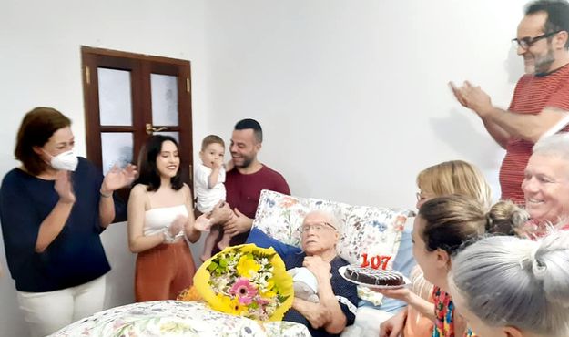 La familia de doña María Lemes Díaz invitó a la alcaldesa de Arrecife, Astrid Pérez, a acudir al hogar de esta familia numerosa para compartir la celebración del cumpleaños de doña María, una de las 11 abuelas que viven en la capital de Lanzarote y que cuentan ya con más de una centuria como vecinos de Arrecife.