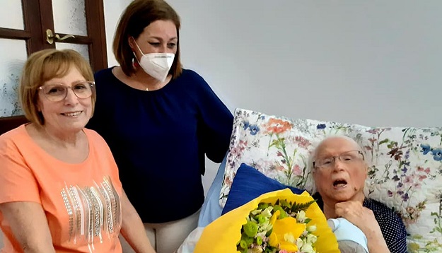 Astrid Pérez aceptó la invitación y obsequió a doña María con un ramos de flores. Durante esta sencilla y emotiva celebración , doña María Lemes estuvo acompañada por varias generaciones de sus descendientes, entre ellos el más pequeño de sus bisnietos, donde juntos le cantaron cumpleaños feliz.