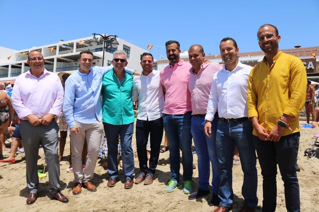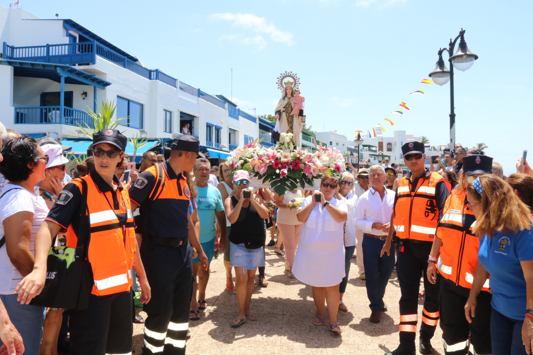 El alcalde, Óscar Noda, junto a miembros del grupo de gobierno de Yaiza y Jacobo Medina, vicepresidente del Cabildo de Lanzarote, han seguido, primero en la misa y después desde tierra, las celebraciones en honor a la Virgen del Carmen.