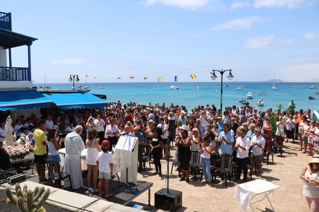 El párroco de Yaiza, Juan Antonio Gallego, que no se ha extendido mucho en la celebración de la eucaristía, sí ha querido agradecer a la Patrona todo lo que hemos recibido de ella, en primer lugar, para recordar después 'la importancia y las aportaciones del sector pesquero a la sociedad', una forma de homenajear a los hombres de mar en un día tan importante para ellos.