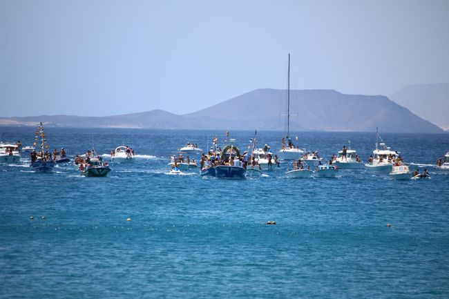 Alrededor de medio centenar de embarcaciones, entre pesqueras, de recreo e incluso los optimist y laser de la Escuela Municipal de Vela, esperaban en la bahía de Playa Blanca listos para recibir a la Patrona y acompañarle durante su recorrido marinero abordo del ‘Isla de Alegranza’, del pescador Samuel Cabrera Nieves, sin duda la mejor manera de mostrarle su devoción y rendirle un merecido tributo.