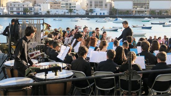 La pasada tarde tuvieron lugar los conciertos en la vía pública cuyos escenarios fueron el Quiosco de la Música y el Charco de San Ginés que acogieron el recital de saxos y el encuentro entre de bandas, respectivamente.