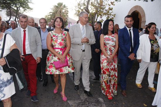 Un estruendoso aplauso y los vivas a la Virgen, ya casi con la noche encima, marcaron luego el inicio del la procesión por la calles de Yaiza. La alcaldesa de Yaiza, Gladys Acuña, el vicepresidente del Cabildo, José Juan Cruz, los alcaldes de Teguise y Tinajo, Oswaldo Betancort y Jesús Machín, respectivamente, concejales de la Corporación municipal de Yaiza, distintos representantes públicos y el grupo de peques participantes del Reinado Infantil de Yaiza y sus familiares acompañaron el andar de los fieles junto a la imagen de la Patrona. Como es habitual, la Banda Municipal de Yaiza encabezó el recorrido de adoración a la Virgen, según ha explicado posteriormente el Consistorio sureño en nota de prensa.